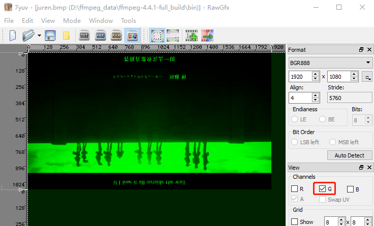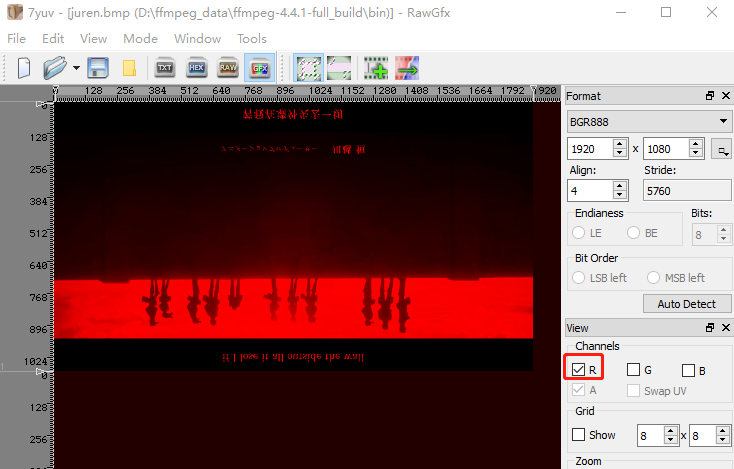 下面用实际的例子要演示一下 HVS 是怎么感知 YUV 3个分量的,下载 meigui.yuv ,用 7yuv 打开,请看下图: